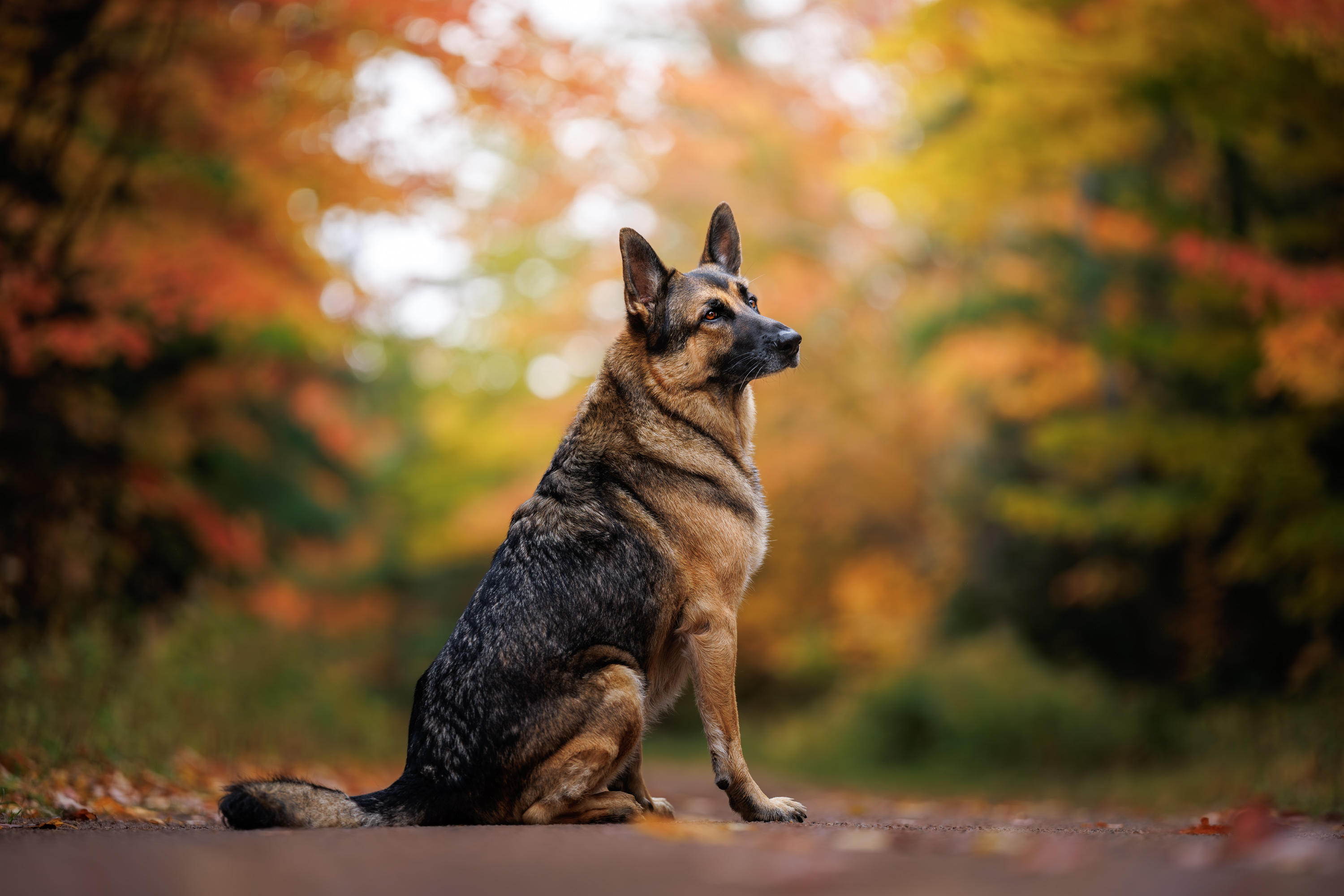 During a quiet moment, I noticed Steel sitting in the middle of the trail, facing away. The background was perfect, and I loved how the dark colouring of the fur on his back echoed the darker tones behind him, and his facial markings. I asked Monica to have him stay exactly where he was, then look back toward her, which created a gorgeous expression and a composition I still absolutely love.