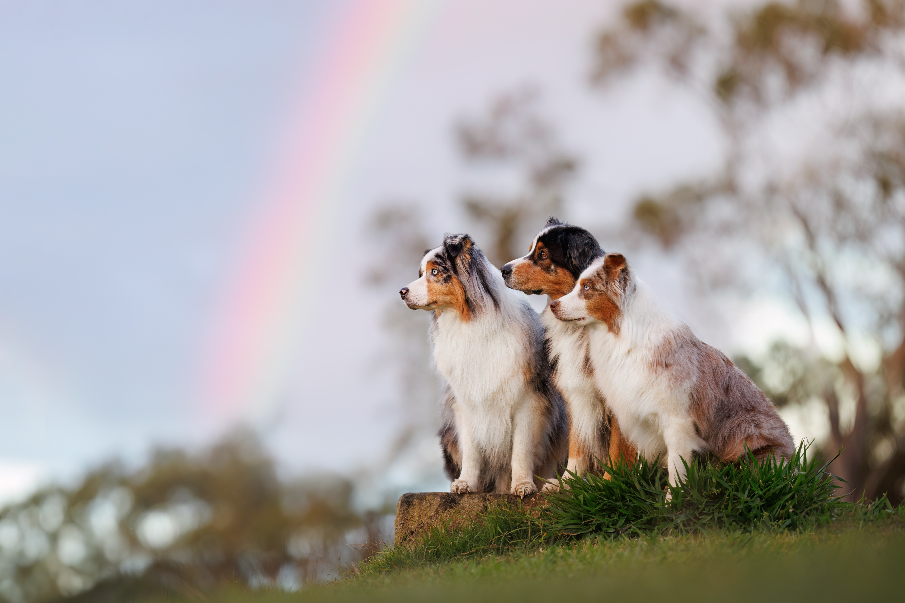 Enzo, Fletcher and Opal the Australian Shepherds, at home in Brisbane
