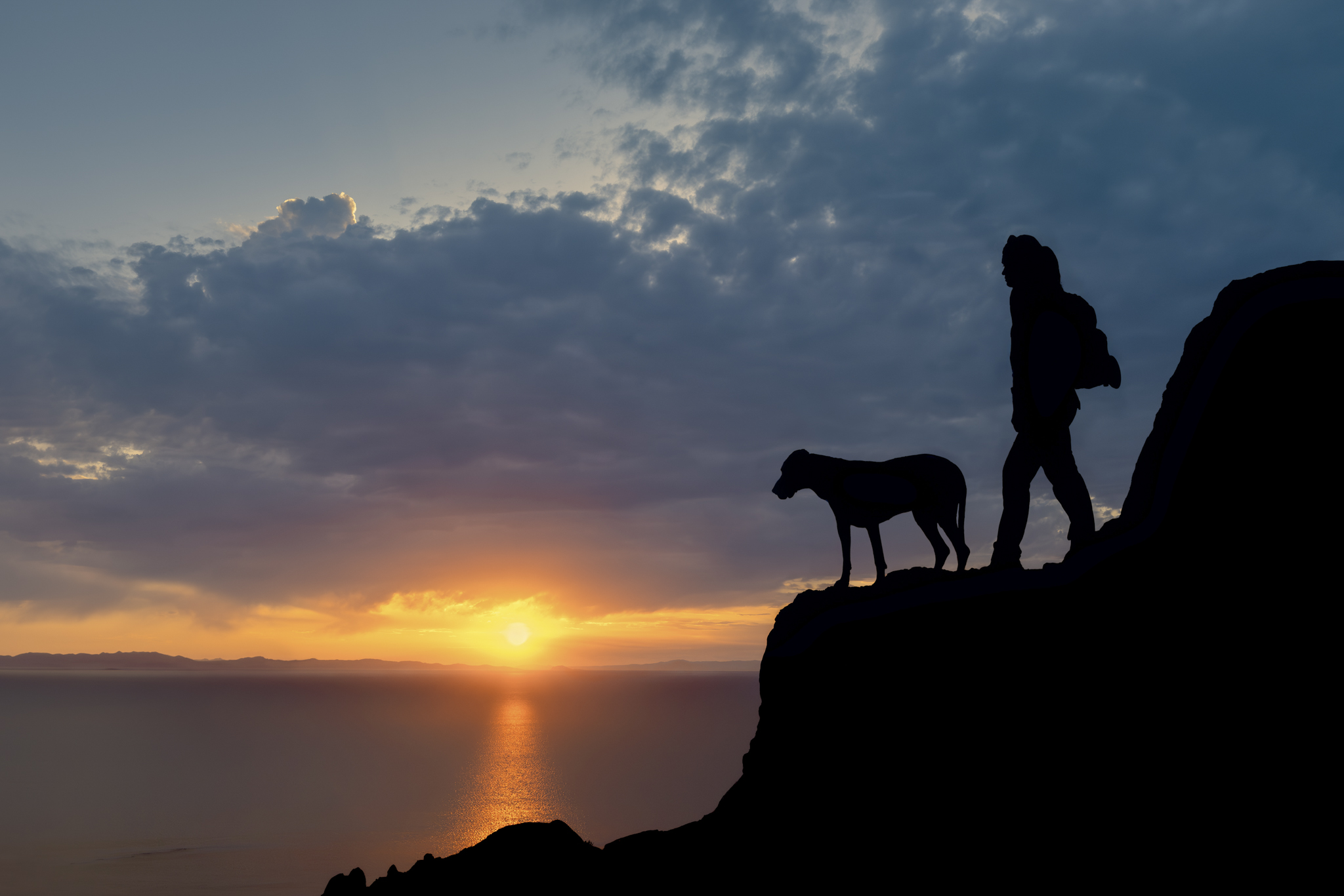 What a fantastic moment, there is something extremely evocative in the dogs gait and them looking down. The sun kissing the landscape through the haze is gorgeous!