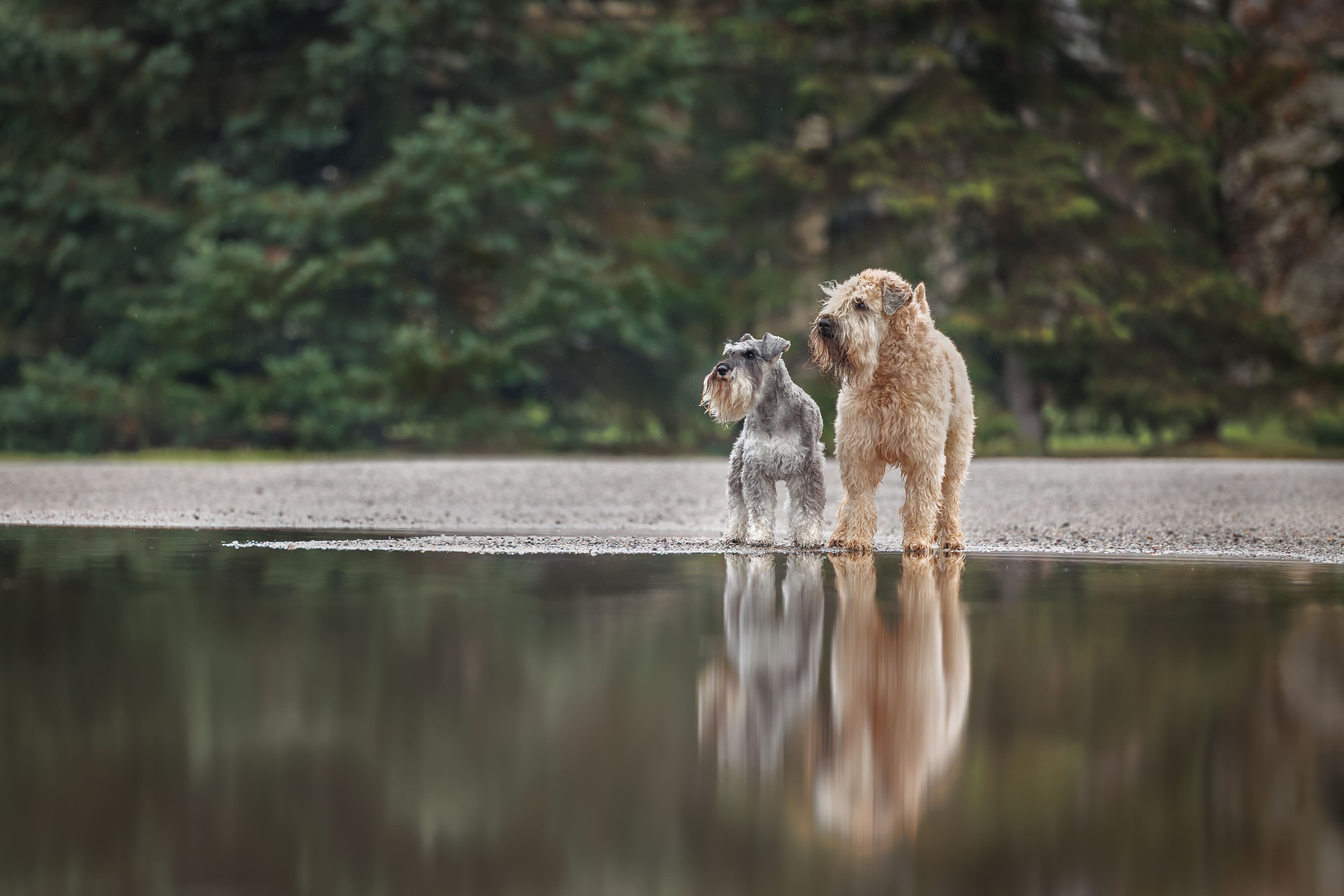 What a lovely expression and pose on both dogs, the reflection is well captured. The raindrops add a touch of atmosphere. But it is a simplicity in the use of the rule of thirds that really ties all those elements together so well.