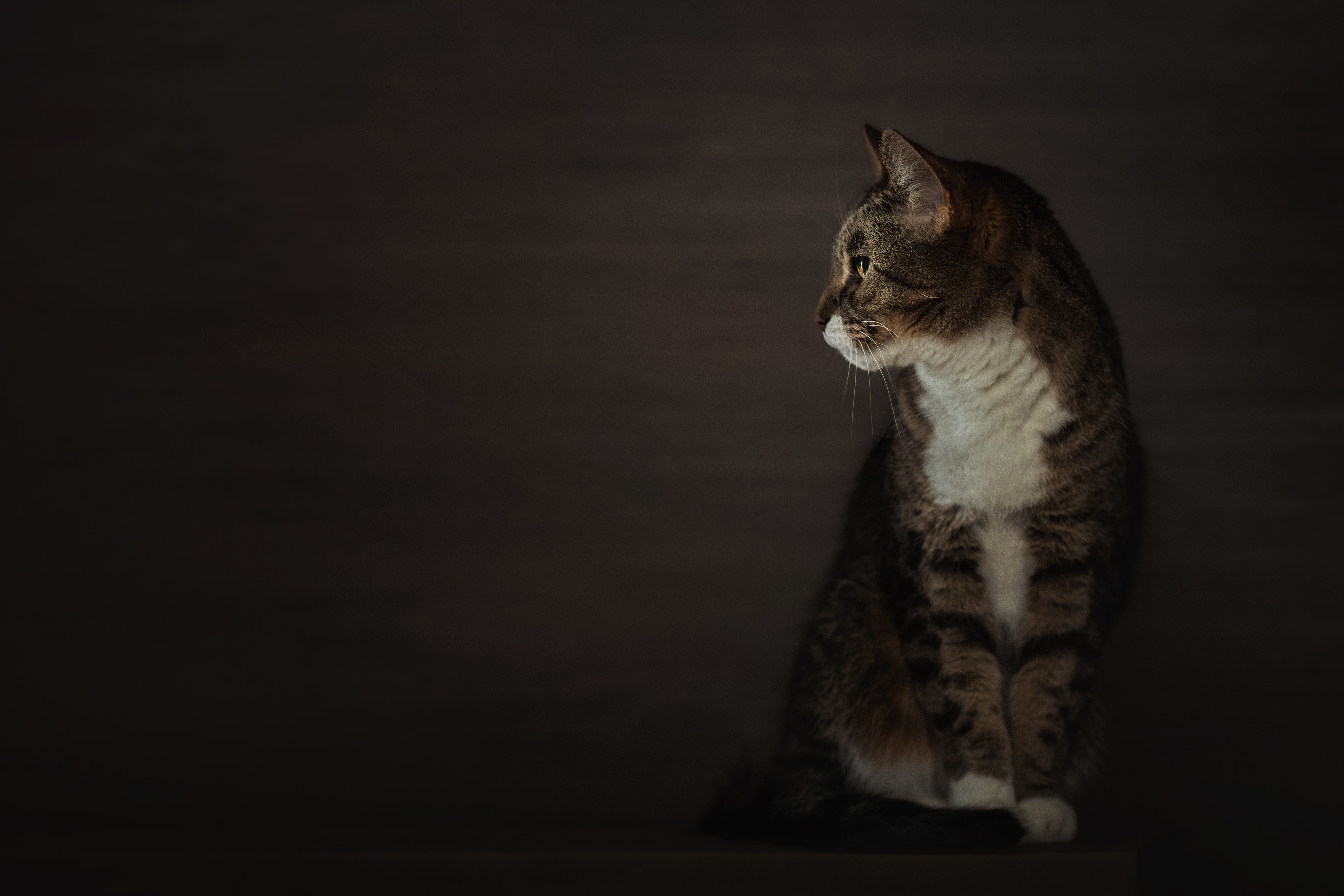The position and pose of the cat really work in this composition. The light and detail in the cat's face holds the viewer's attention. The soft texture in the background adds a subtle interest.